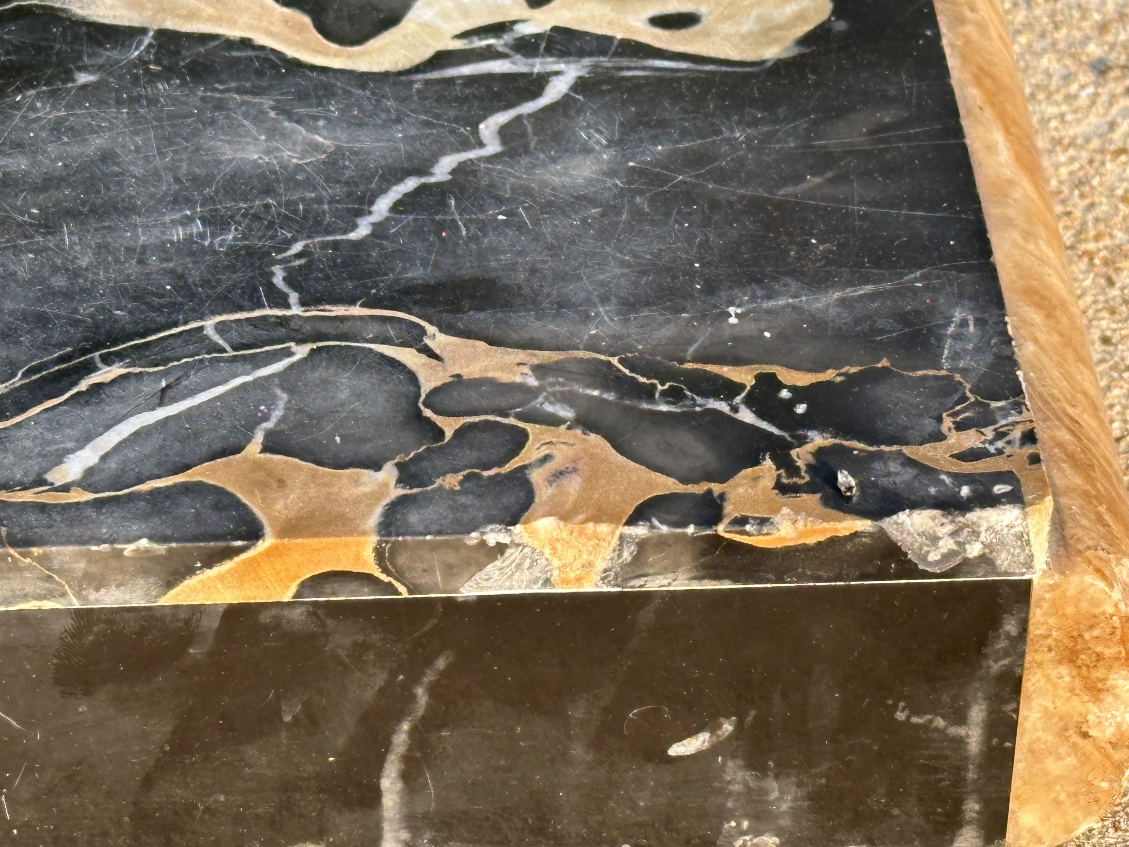 Rare & Original French Bronze Elk Sculpture on Marble for your consideration. The bronze elk on marble sculpture is very large, measuring approx. 24 3/4 inches long, 19 inches tall and 6 inches wide. France, early 20th Century. Artist, George Omerth, active 1895-1925. Art Deco, bronze on marble. Wonderful sculpted stag standing on back haunches with front legs supported on raised marble block. Marble pattern alternates between a dark stone with pronounced veined variations, contrasted with a lighter, sandy color of natural striations, creating a gorgeous plinth accenting the majestic Wapiti. Etched signature, “Omerth” in back right corner of marble base. Good antique condition. Shows wear commensurate with age. Right antler has been restored with crack still showing. The sculpture would have originally had an arrow sticking through the elk’s neck which is no longer present. Minor flecking to marble edges. Condition issues are not overly noticeable except under closer examination. Beautiful natural patina. See photos. Displays magnificent!
