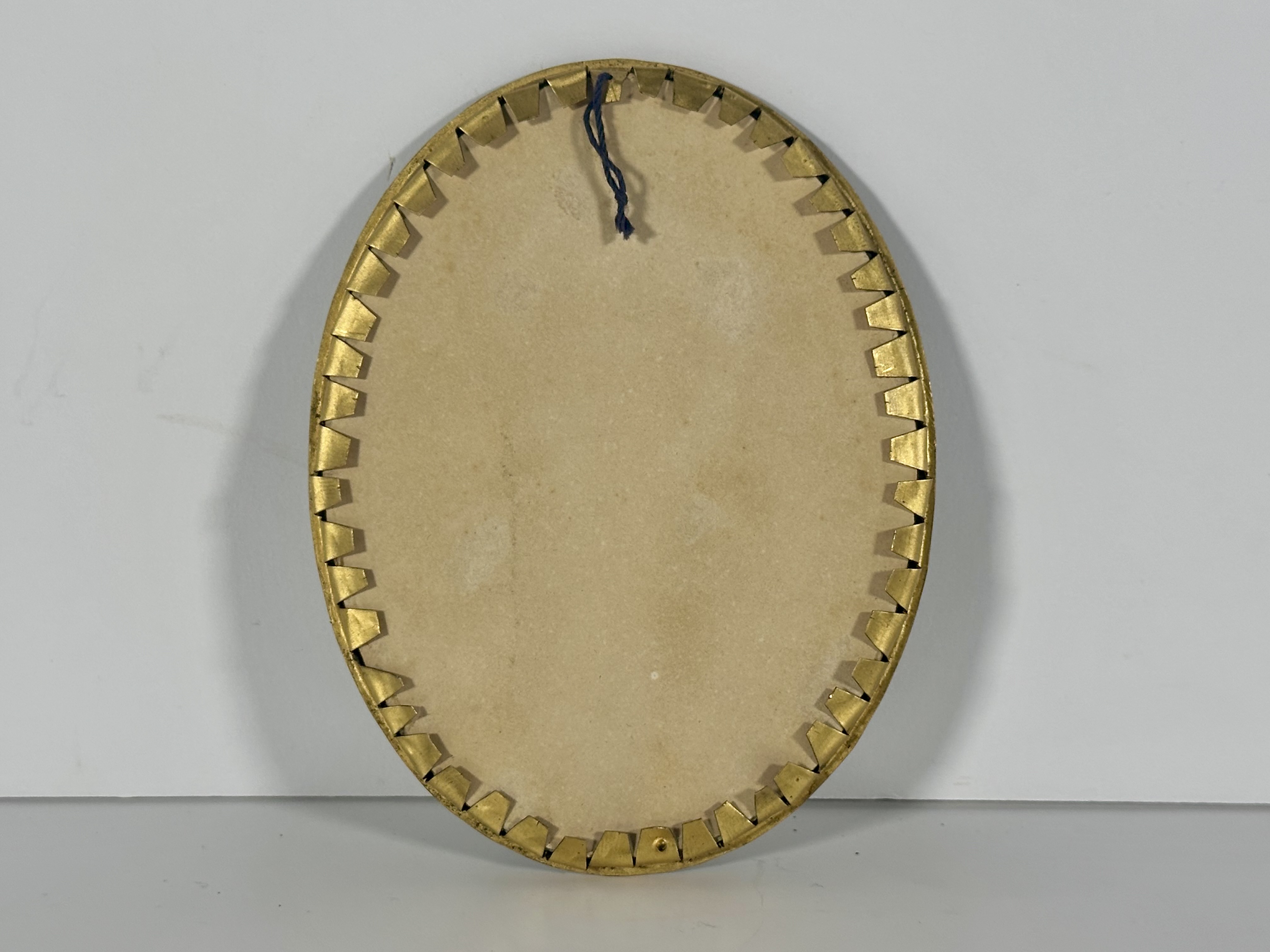 Victorian Miniature Portrait Painting of Young Maiden for your consideration. The framed portrait measures approx. 3 3/8 inches X 4 3/8 inches. Continental, second half 19th Century. Oval, decorative gilt metal period frame, watercolor, under glass, old paper backing. Portrait painting depicts a beautiful young brunette with flowers adoring her hair, piercing golden-brown eyes and a subtle, innocent smile. She is wearing a lacy yellow dress with blue shawl covering her left shoulder and floral wreath draped over her chest. Portrait miniature is a tad risqué, as the yellow dress is a bit transparent and loosely fitted, falling slightly off her right shoulder, partially exposing the top of her right breast. The portrait painting is signed by the artist on the edge, “Garnier”. Very good antique condition. Shows minor wear commensurate with age. See photos. Displays elegant!