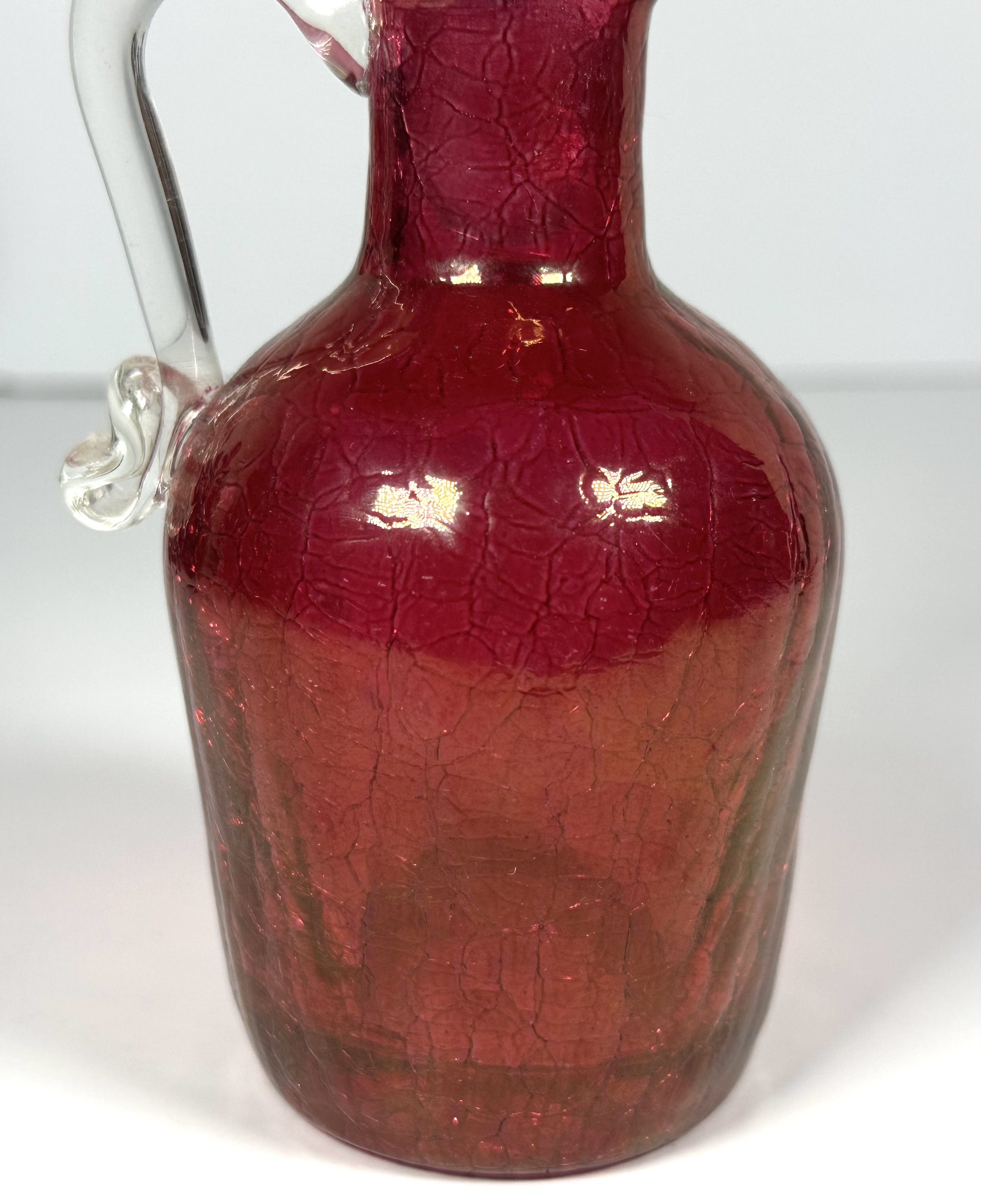 4. Attributed to Kanawha Glass Company, Ruby Red Luster Crackle Glass. American, 20th Century. Measures approx. 6 1/2 inches tall with stopper; 5 inches tall without stopper and approx. 2 1/4 inches in diameter. No chips or cracks.