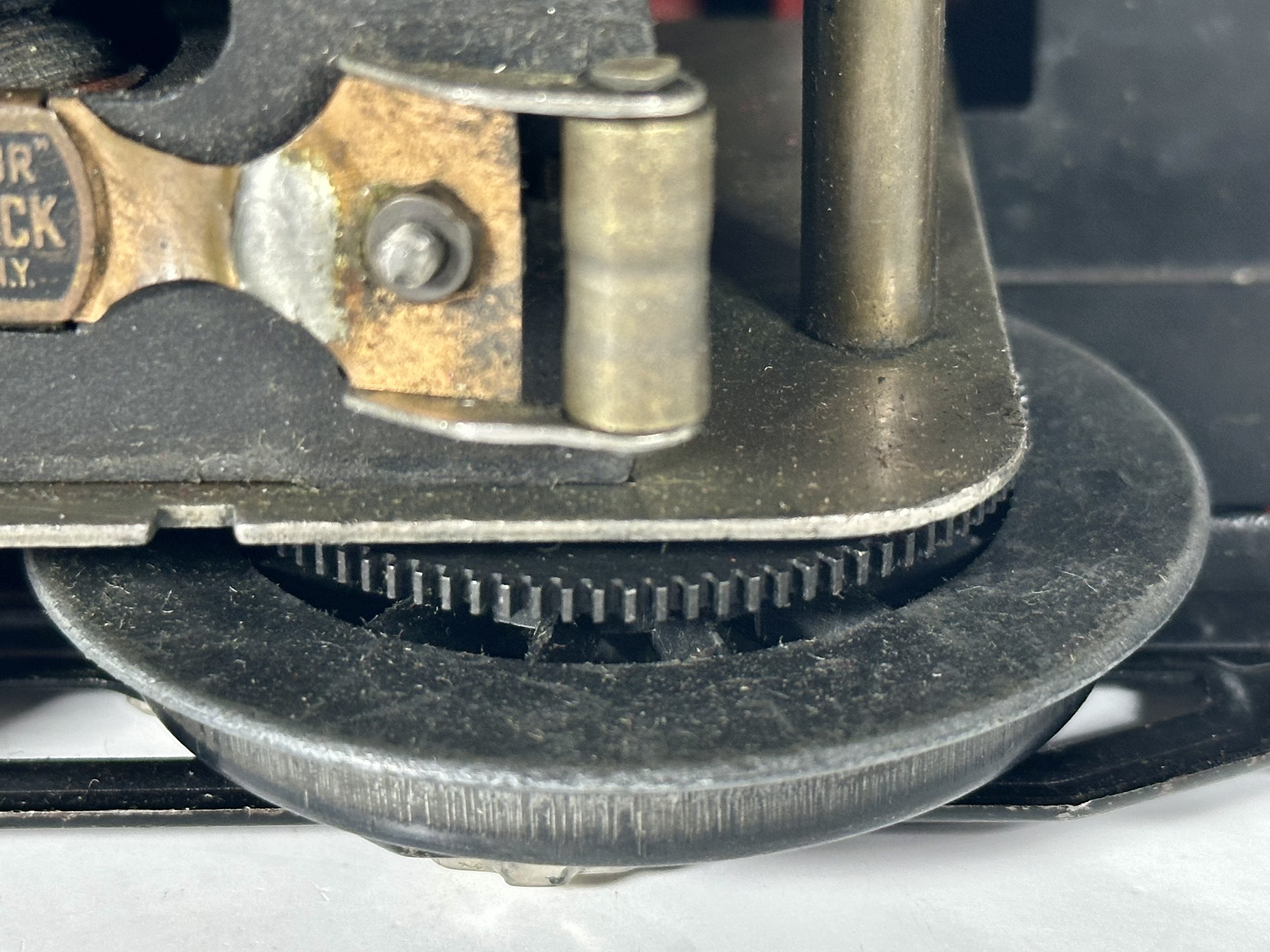 Rare & Original Prewar Lionel Standard Gauge No. 8 E Locomotive for your consideration. The toy locomotive measures approx. 12 inches long (11 inches long w/out couplers), 3 1/4 inches wide and 4 3/4 inches tall. American, NYC c. 1925-1932. Lionel Corp. Retains over 90% of original red paint. Two headlight bulbs. Brass plates on either side reads, “LIONEL” “THE LIONEL CORPORATION N.Y.” and “No. 8”. Bottom information plate reads, “LIONEL “SUPER-MOTOR” FOR STANDARD TRACK THE LIONEL CORPORATION, N.Y.”. Good antique condition. Shows wear commensurate with age and use. Being sold As-Is, unknown, and untested condition. Natural aged patina. See photos. Displays spectacular! The perfect start or addition to any antique toy collection!